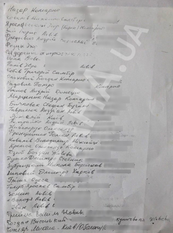 В нашем распоряжении оказался полный список «группы Парасюка» — той самой, в которой состоял и Назар Юськевич. В ней 34 человека. Курсивом отмечены те, о ком уже «Страна» рассказывала, как о вероятных членах группы Парасюка.