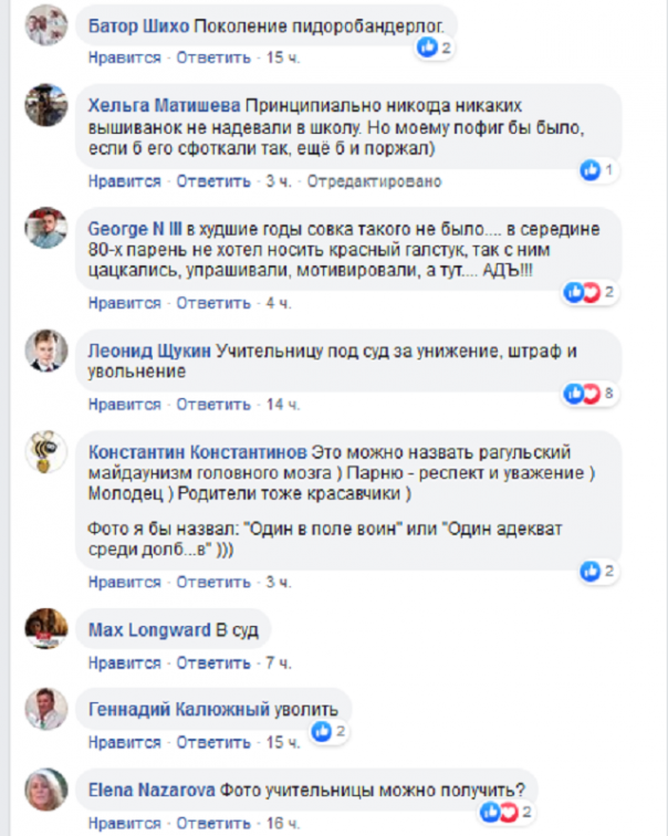 «Учительница не имела права так делать. Унижать ребенка, только потому, что он пришёл в школу без вышиванки — омерзительно и непедагогично»;