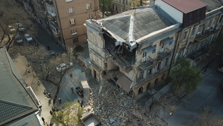 Момент внезапного обрушения старинного здания в Одессе попал на видео