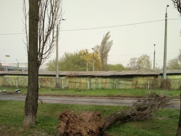 «Будьте осторожны... пр.Королёва, упало дерево и два столба...», - описала ситуацию киевлянка Мирослава Грицюк.