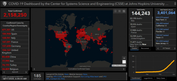 По состоянию на 07:50 в мире зарегистрировано 2 158 594 случаев инфицирования коронавирусом. При этом 543 тысячи 732 человека выздоровели и 144 тысячи 221 человек скончались.
