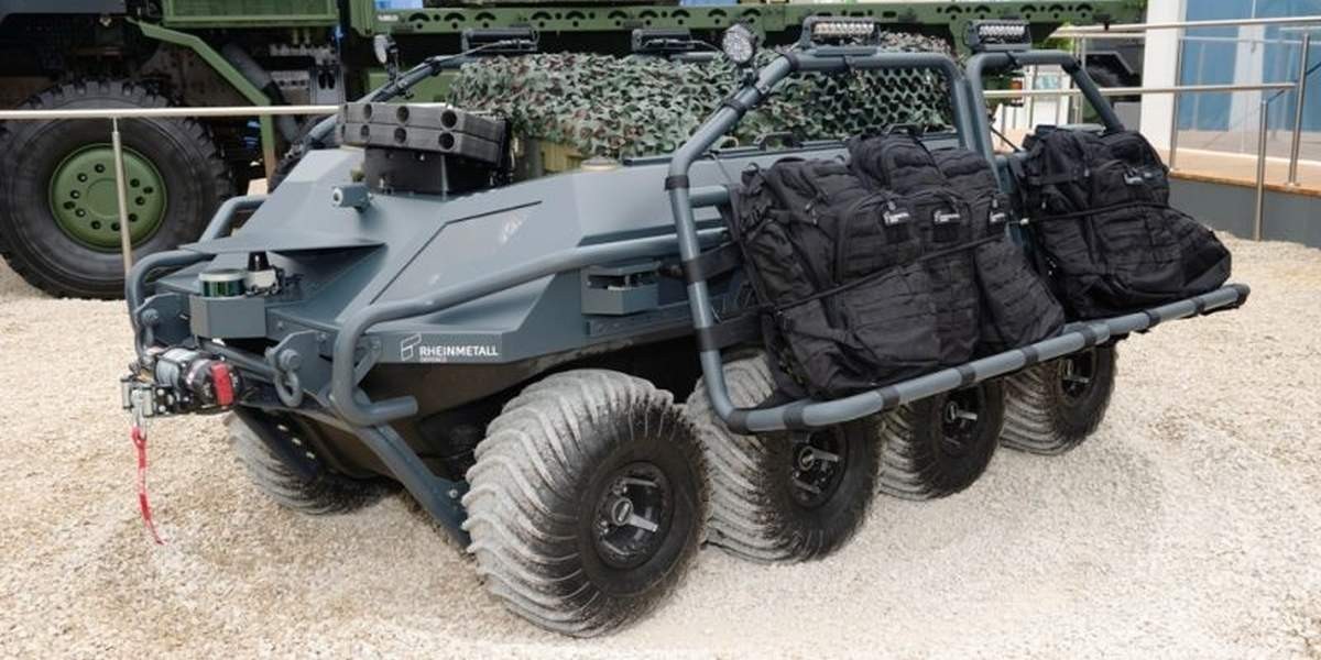 На самом деле — канадских. Но у немцев. Сейчас вообще сложно что-то понять, с этой глобализацией. В общем, роботы от концерна «Рейнметалл», основанные на шасси, созданном в Онтарио, отправились в Англию. Такие дела.