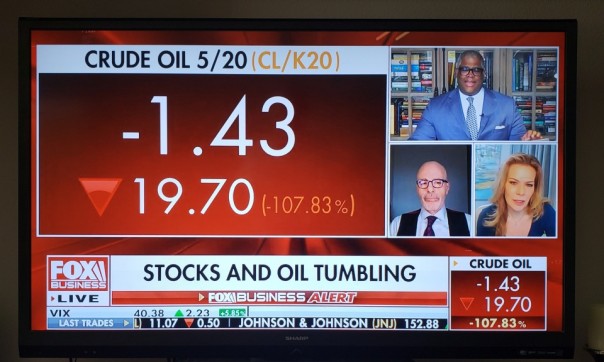 Ранее в этот же день цена нефти WTI достигла уровня 1 апреля 1986 года и упала до $10 за баррель, затем впервые в истории опустилась ниже $8.