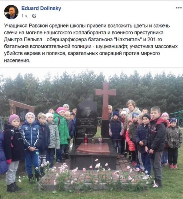 В то время, когда по всей Украине объявлен карантин, во Львовской области учащихся Равской средней школы заставили возложить цветы и зажечь свечи на могиле нацистского коллаборанта и военного преступника Дмитрия Пелипа.