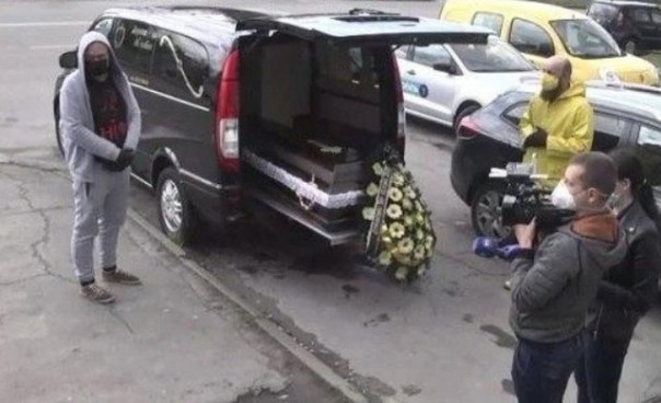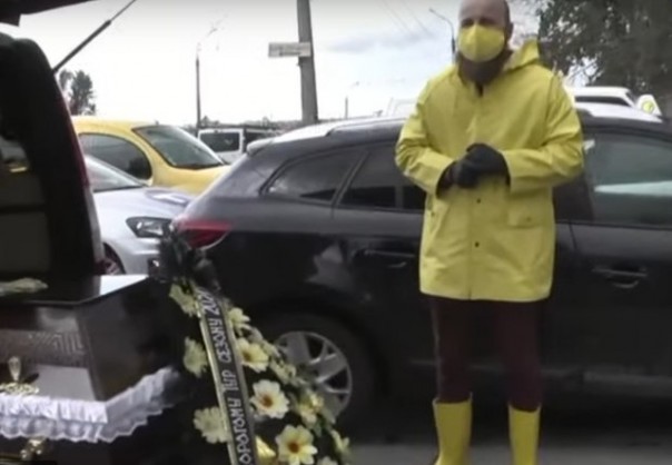 В Тернополе активисты устроили прощальную акцию, проводив в последний путь скончавшийся от коронавирусной инфекции туристический сезон.