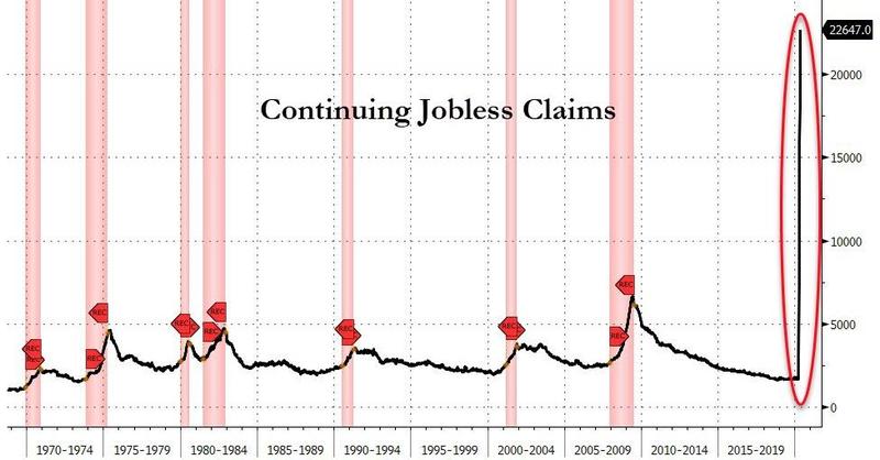 - совокупно за семь недель подано 33.48 миллионов заявлений, что в 12 раз хуже любого периода за всю послевоенную историю США
