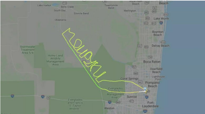 Согласно информации портала, инцидент был зафиксирован в среду, 13 мая, в районе заказника Браунс Фарм (Browns Farm Wildlife Management Area) в американском штате Флорида. Полет был выполнен легким самолетом Cessna 172N Skyhawk, он вылетел из города Форт-Лодердейл и находился в воздухе около часа.