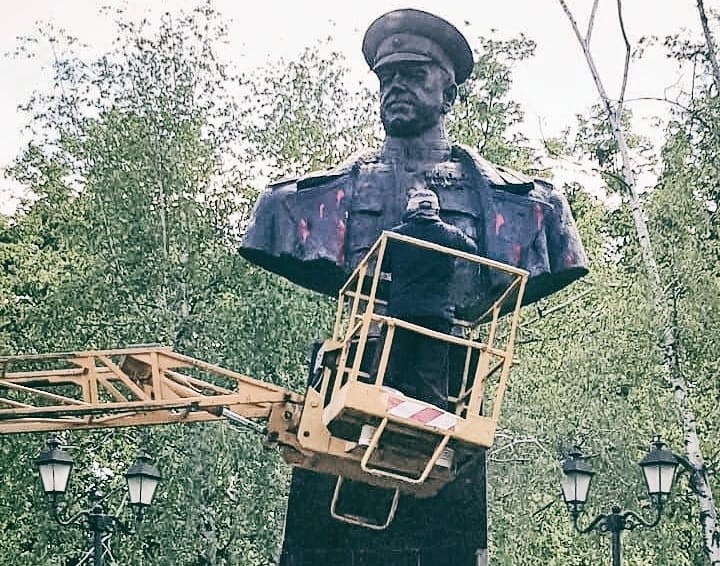 В Харькове в очередной раз пострадал бюст маршала Георгия Жукова. Ванжалы облили его красной краской.