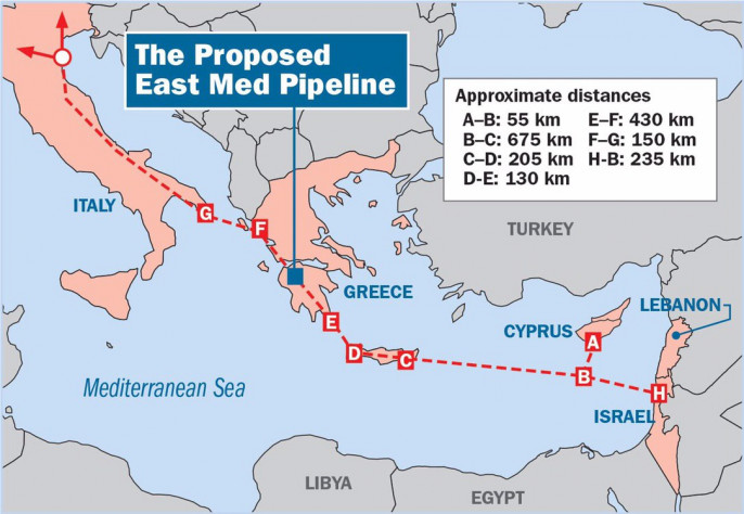 Понятно, что Турция не заинтересована в реализации East Med и сделает всё, чтобы этого газопровода не было. По этому поводу турецкий президент заявил, - «ни один проект в Средиземноморье без Турции не сможет выжить ни экономически, ни юридически, ни дипломатически», но Эрдоган сразу сделал оговорку: Анкара заинтересована в переговорах «с любым государственным субъектом, кроме Кипра». Таиип Реджепович сделал намёк Израилю. Никто не будет спорить - турки и евреи прагматики, это подтверждает и тот, факт, что сегодня большую часть потребляемой нефти Израиль получает из Азербайджана через территорию Турции. Развивая тему прагматизма сторон, стоит отметить: прокладка гипотетического газопровода вдоль побережья Сирии или в ее территориальных водах по сравнению с глубоководным маршрутом обойдется гораздо дешевле и будет проще как технически, так и политически. Если задумку реализовать, она предвещает всем сторонам хорошую выгоду в экономическом плане. Но даже не это главное. В случае альянса Израиль — Турция может появиться неплохая геополитическая конфигурация, которая, откроет новые возможности для регионального сотрудничества в Восточном Средиземноморье и на Ближнем Востоке. Это всё не понравится Сирии, для неё это враждебные государства. По мнению некоторых российских экспертов - такой проект фактически возвращает Сирию в систему международных отношений, открывая возможность притока инвестиций, очень необходимых для восстановления страны. Сирийский кризис был инспирирован извне для того, чтобы предотвратить прокладку иранского нефтепровода через сирийскую территорию. Может случиться так, что строительство нового трубопровода станет шагом к урегулированию ситуации.