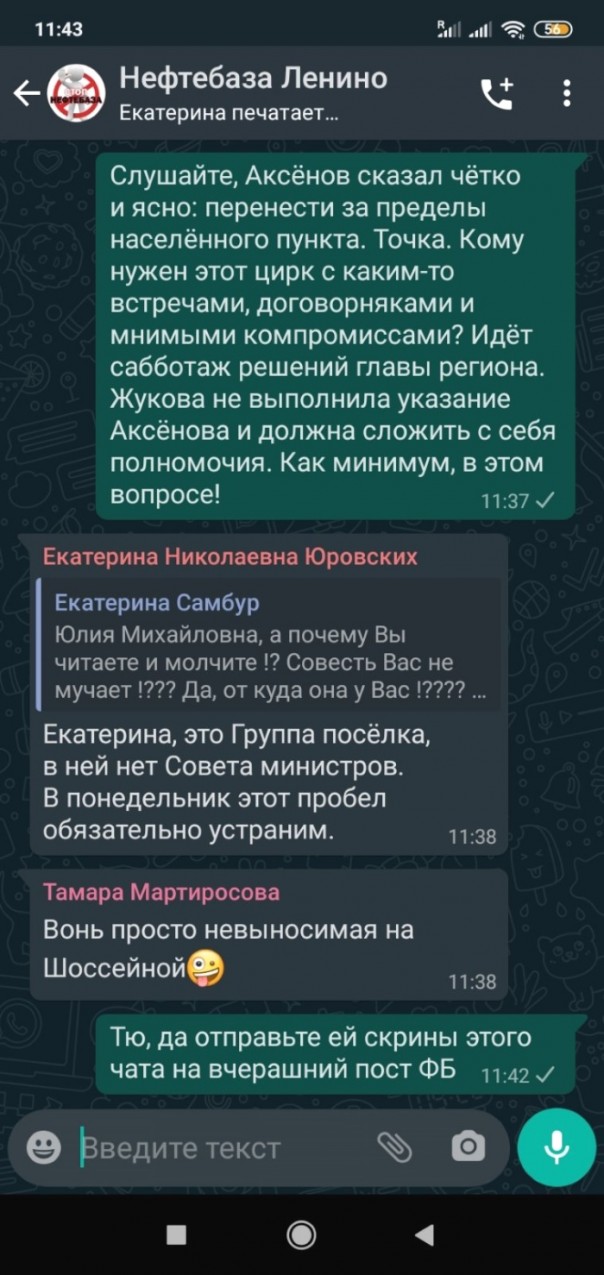«Юлия Михайловна, почему Вы нас читаете и молчите? Совесть Вас не мучает?», — спрашивает чиновницу возмущённая жительница посёлка Екатерина Самбур.