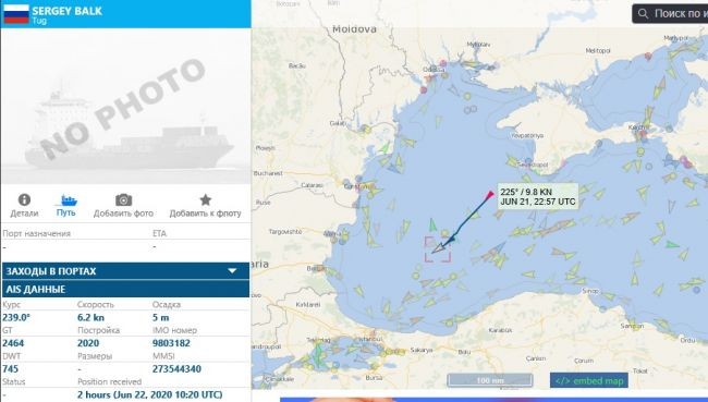 Cразу после захода в Черное море эсминца USS Porter в нейтральные воды в самый центр Черного моря выдвинулся новый морской буксир Черноморского флота «Сергей Балк». По данным навигационного портала Vesselfinder, он по-прежнему находится в нейтральных водах и продвинулся на сотню миль ближе к проливу Босфор.