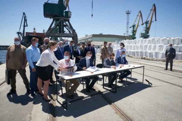 Сегодня в Херсоне при участии президента Украины Владимира Зеленского, министра инфраструктуры Владислава Криклия был подписан концессионный договор о передаче Херсонского морского торгового порта.