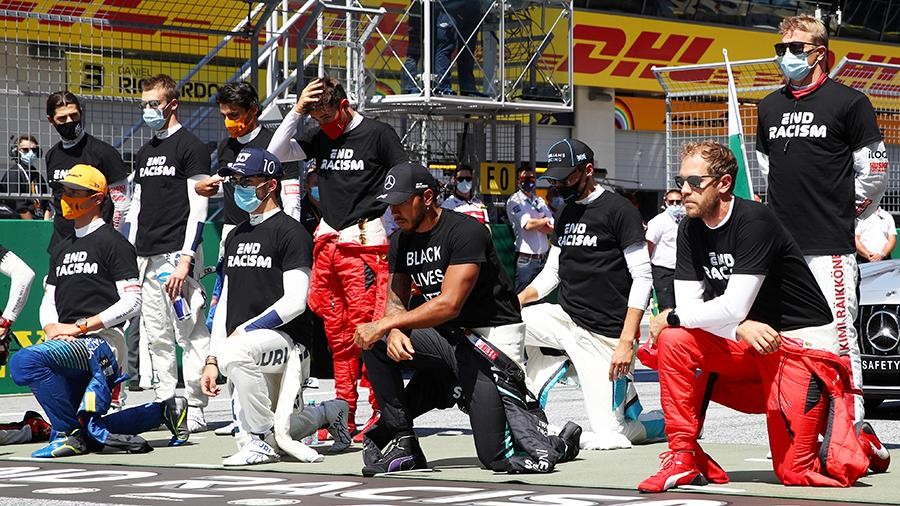 В воскресенье перед стартом Гран-при Австрии шестеро гонщиков отказались вставать на одно колено в знак протеста против расовой дискриминации. В их числе были: Даниил Квят (Россия, «Альфа Таури»), Шарль Леклер (Монако, «Феррари»), Макс Ферстаппен (Нидерланды, «Ред Булл»), Карлос Сайнс (Испания, «Макларен»), Кими Райкконен (Финляндия, «Альфа Ромео»), Антонио Джовинацци (Италия, «Альфа Ромео»). Они ограничились футболками с надписью «End racism».