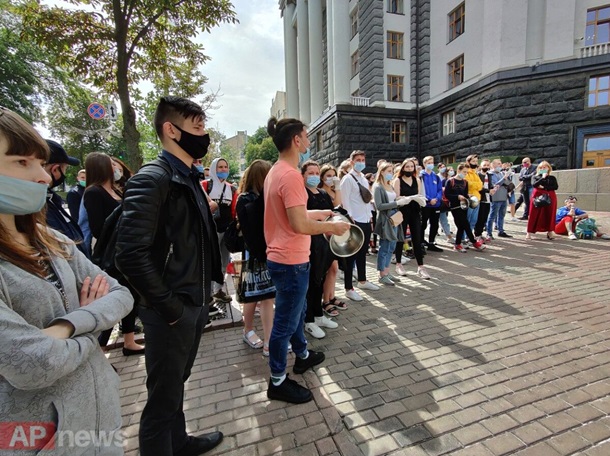Вчера в Киеве возле здания Кабинета министров также прошла акция протеста работников баров и ресторанов, они требовали от правительства разрешить им работать ночью.