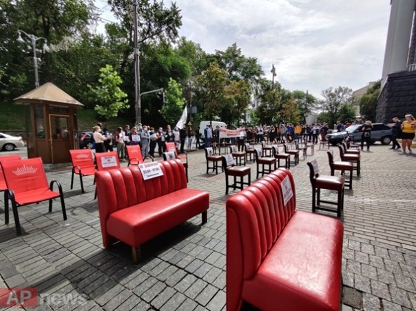 Отмечается, что в знак протеста рестораторы выставили пустые стулья как символ пустых ресторанов.