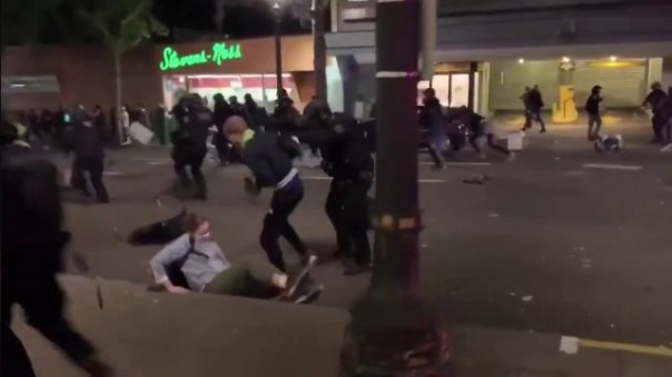 Ранее сообщалось, что американском Портленде (штат Орегон) центре города собралась толпа. Протестующие возвели баррикады у здания местного федерального суда, несколько человек поджигали мусорные баки. Позже нескольким людям удалось вломиться здание полицейского профсоюза и устроить там пожар.