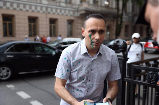 Депутата от ОПЗЖ Волошина перед Верховной Радой «прибитые патриоты» облили зеленкой