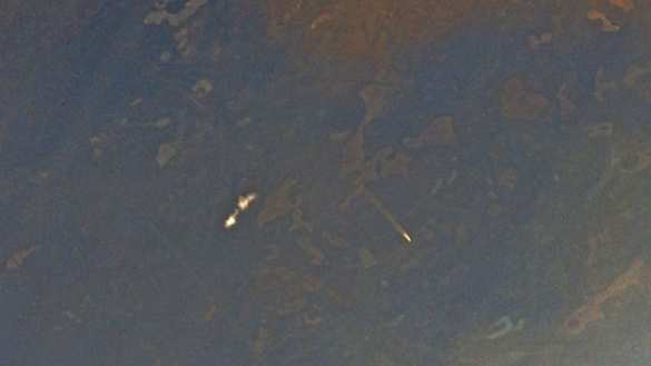 Российский космонавт Иван Вагнер, который сейчас находится на МКС, снял запуск с борта станции и выложил фото в своей Twitter.