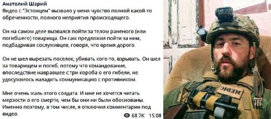 Мне очень жаль этого солдата. И мне не хочется читать мерзости о его смерти, чем бы они ни были обоснованы. Именно поэтому, в том числе, я отключил комментарии под видео», – написал Шарий.