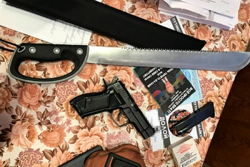 «В ходе обыска были изъяты карабин СКС, ружье "Сайга" и 120 патронов к ним, травматический пистолет "Гроза-021" и более 80 патронов к нему, шесть бутылок с зажигательными смесями, два охотничьих ножа, мачете, устройства связи, банковские карты и экстремистская литература», — перечислил источник.