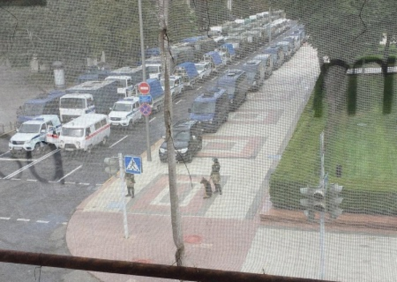 У оппозиции начинается истерика в соцсетях выкладывают фото и видео колон военных грузовиков, автобусов с личным составом, автозаков, водомётов. Также на фото можно увидеть прицепы с колючей проволокой.