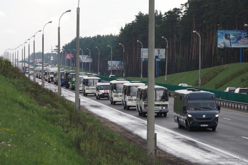 Кроме того, очевидцы в соцсетях сообщают, что неподалёку от одной из резиденций Лукашенко скопилось огромное количество милицейских машин и автозаков. Издание Tut.by публикует видеозапись, на которой колонна спецтехники едет по Минску.