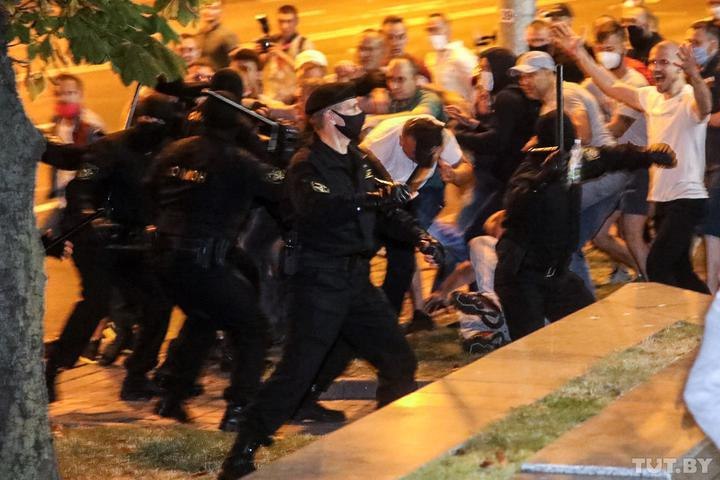 Так, в центре Минска вспыхнули протесты: начались схватки, ОМОН применил светошумовые гранаты. В ответ протестующие стали строить баррикады, но силовики начали их штурмовать с водометами и светошумовыми гранатами.