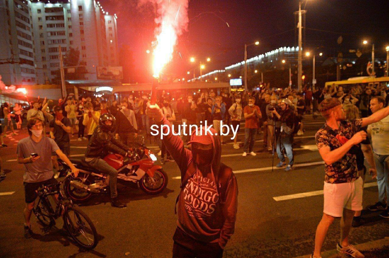 Sputnik Беларусь @sputnikby сообщает о жестком разгоне людей на проспекте Притыцкого. В бойцов ОМОНа летят "коктейли Молотова". Тоже, наверное, мирные демонстранты.