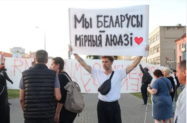 Ещё одна разновидность омерзительной лжи, которая сопровождает каждую цветную революцию, — это неизменный упор на собственную мирность. Неважно, что «мирный протест быстро перешёл в немирный», как писала 10 августа всё та же NEXTA, об этом мы скажем чуть позже, а пока — дежурная, sine qua non, фоточка:
