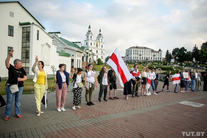В Минске протестующие вместо «Цепи солидарности» выстроились в «Цепь покаяния»