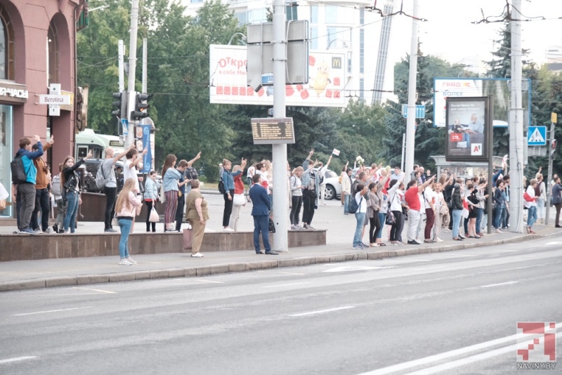 Сегодня, 21 августа, вечером в Минске сторонники оппозиции устроили акцию с выстраиванием в цепи вдоль дорог. Только, если неделю ранее это были «Цепи солидарности», то на сей раз акция называется «Цепь покаяния». Ее цель — заявить о недопустимости насилия со стороны силовиков.
