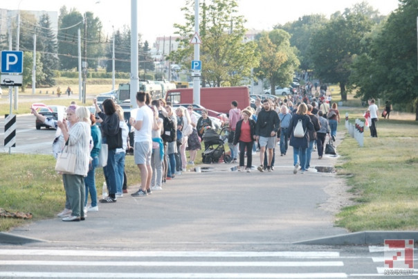 Протестующих, по информации СМИ, не очень много, но они стоят по всему городу: на Немиге, Грушевке, в районе Академии наук, в самих Куропатах. Они держат флаги, а некоторые проезжающие машины поддерживают их сигналами. Источник