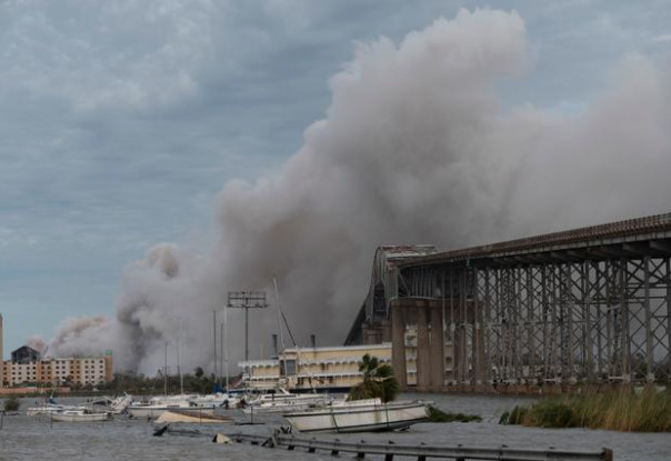 Дым поднимается от горящего химического завода после урагана Лаура в Лейк-Чарльз, штат Луизиана, 27 августа 2020 года.