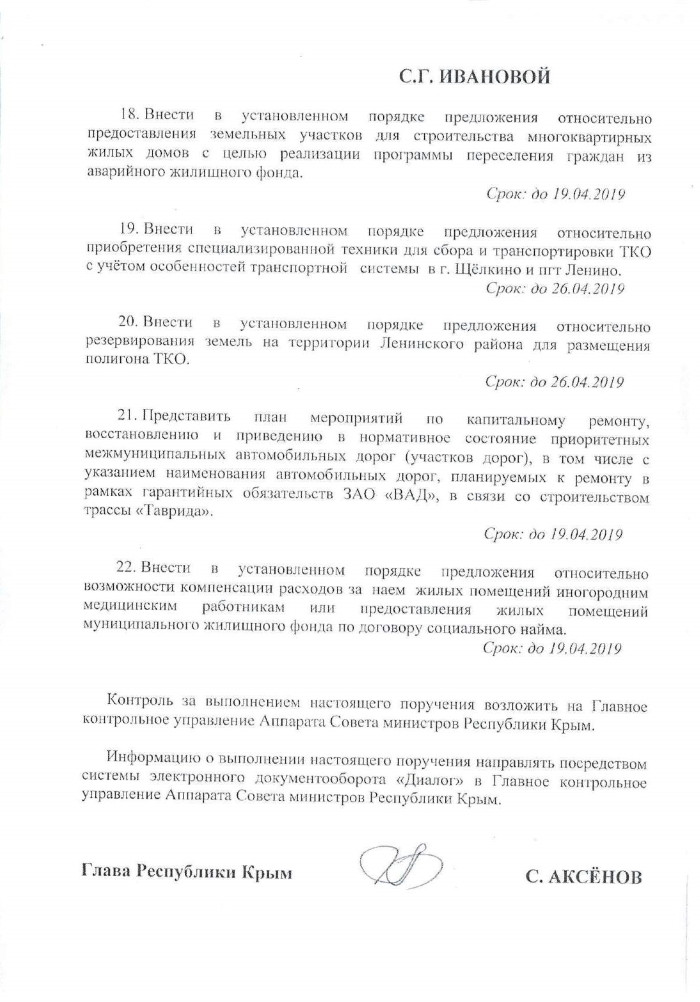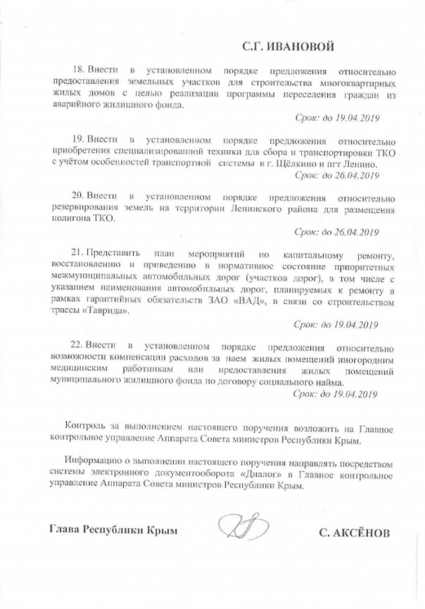 На эти цели из республиканского бюджета выделялись средства в сумме 776,22 тыс. рублей. Тем не менее, вступив в должность, Гаптракипов в одностороннем порядке расторгает договор и срывает исполнение указов Аксёнова. Свой поступок главврач мотивирует более выгодными условиями доставки продуктов питания из Феодосии.