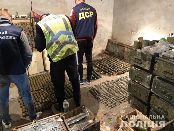 "В частности, в подвальном помещении гаража изъяли 472 корпуса ручных гранат различного типа, 765 запалов, более 660 гранатометных выстрелов различного типа, 122 пусковых ракетных двигателей, 49 реактивных противотанковых гранат различного типа, 66 ручных дымовых гранат, 20 сигнальных, осветительных, минометных и противопехотных мин, выстрел из осколочно-фугасным снарядом. Кроме того, среди изъятого 55 ящиков с патронами разного калибра - почти 62 тысячи патронов, а также тротиловые шашки - общий вес 5 кг, взрывные устройства, другие боеприпасы и вспомогательные военные средства", - говорится в сообщении.