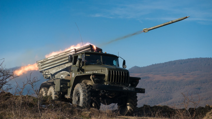Одна пусковая установка РСЗО "Град" несет 40 ракет 9М22У. Полный залп занимает всего 20 секунд. Источник