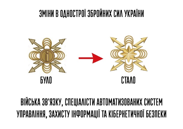 Изменены беретные знаки Радиотехнических войск и Войск связи, чтобы эти знаки не были похожи на российские.