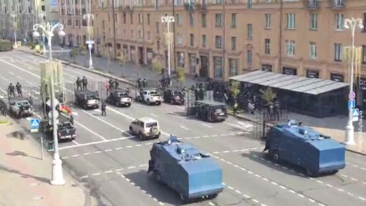 Десять БТР с военнослужащими стоят у Дворца независимости в Минске – резиденции президента Белоруссии. Рядом с дворцом находится также Верховный суд республики. Неподалеку стоят машины с колючей проволокой, передают информагентства.