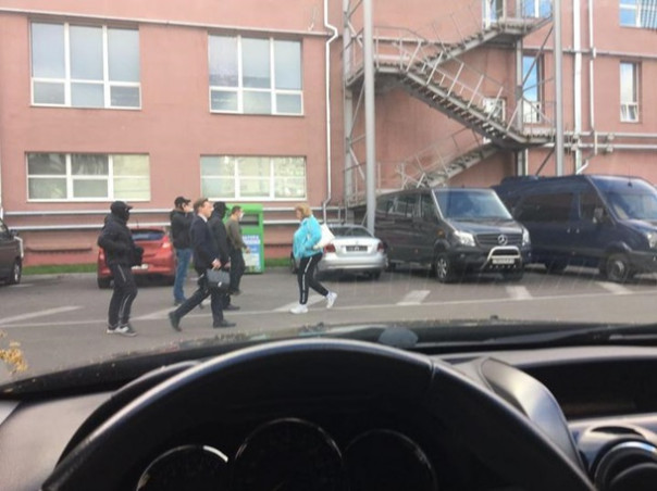 Очевидцам удалось сфотографировать людей в масках рядом с Максимом Знаком на парковке у штаба.