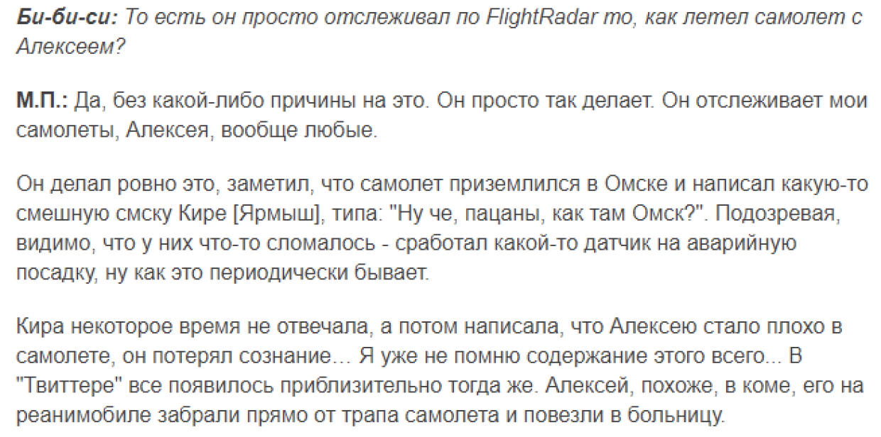 Итак, все интервью было выстроено так, чтобы все версии о причастности Марии к отравлению и её связях с британскими политическими кругами показались бредом. Мол, это простая скучная Маша Певчих. Да, она не рядовая сотрудница ФБК, но нет в её биографии ничего такого, за что можно было бы зацепиться.