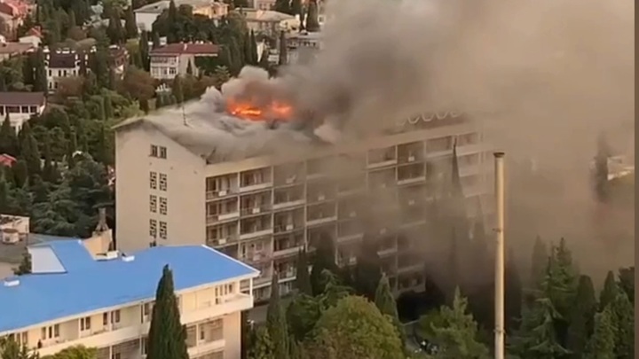 Горящий санаторий Минобороны в Ялте сняли на видео