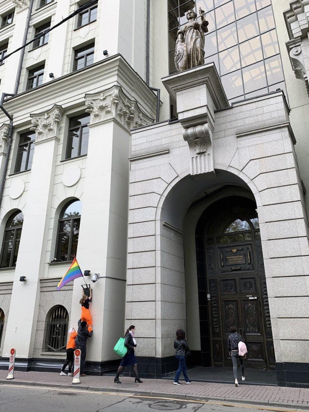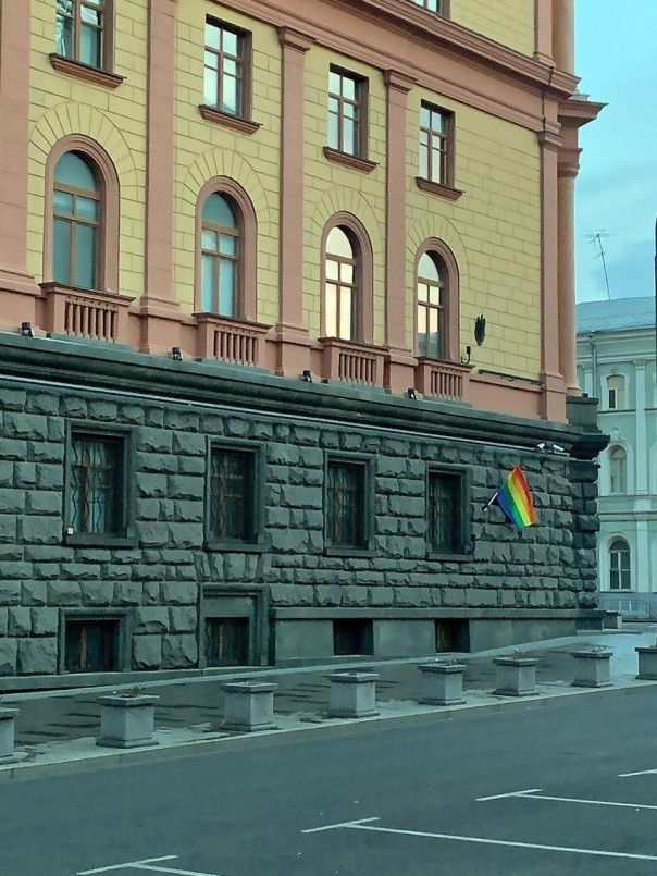 Извращенцы Pussy Riot развесили ЛГБТ-флаги на здании ФСБ, администрации президента и Верховного суда