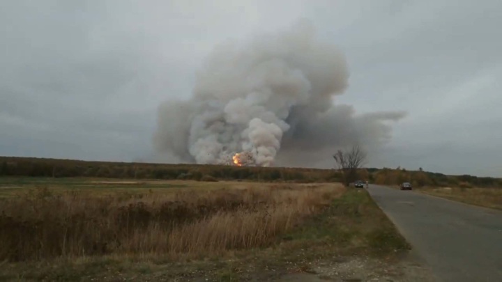 "Сплошная канонада": осколки снарядов на горящем арсенале разлетаются на десятки километров, трасса "Каспий" блокирована, эвакуированы 14 сел