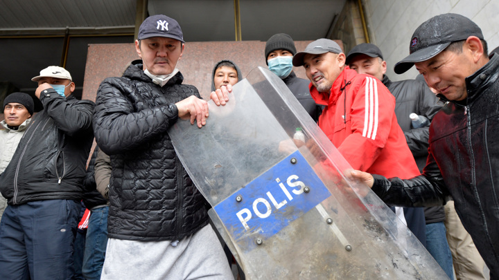 Массовые волнения в Бишкеке произошли после проведения парламентских выборов. Сторонники партий, не прошедших в законодательный орган, захватили здания мэрии Бишкека, правительства, парламента и администрации президента, а также Генпрокуратуры. Оппозиционеры создали сразу несколько параллельных структур, которые объявили себя временной властью и назначили своих премьер-министров. Кроме того, неизвестные люди захватили ряд месторождений и предприятий, в том числе в золотодобывающей промышленности.