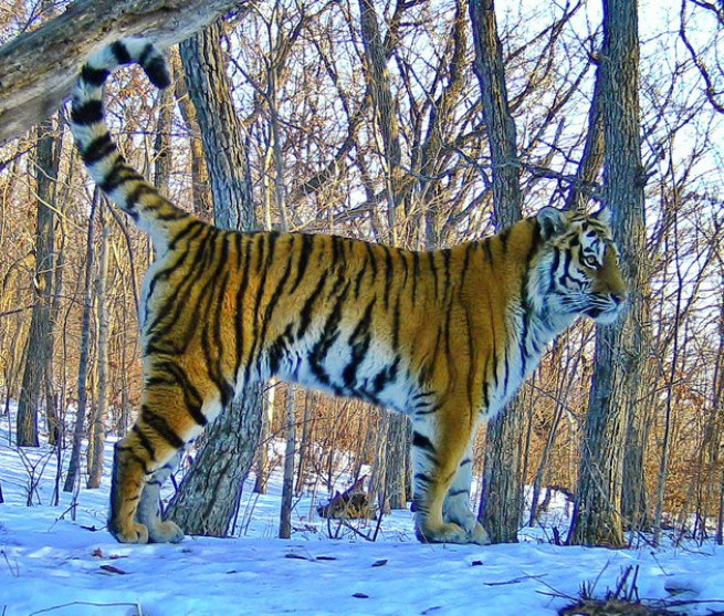 Ранее она уже «позировала» автомобилистам. На полученных кадрах заметно, что тигрица находится в хорошей физической форме. Поведение хищницы при встрече с людьми также не вызывает вопросов у учёных – в данной ситуации она повела себя по-тигриному безукоризненно, без спешки скрывшись с места.