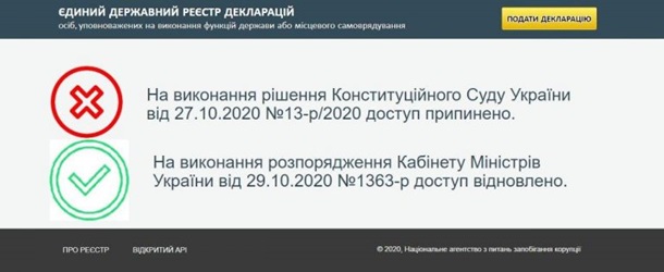 Во исполнение распоряжения Кабмина, принятого по итогам внеочередного заседания во главе с президентом Владимиром Зеленским, Нацагентство по вопросам предотвращения коррупции открыло доступ к публичной части Единого государственного реестра деклараций. Об этом в ночь из четверга на пятницу, 30 октября, сообщила пресс-служба НАПК.