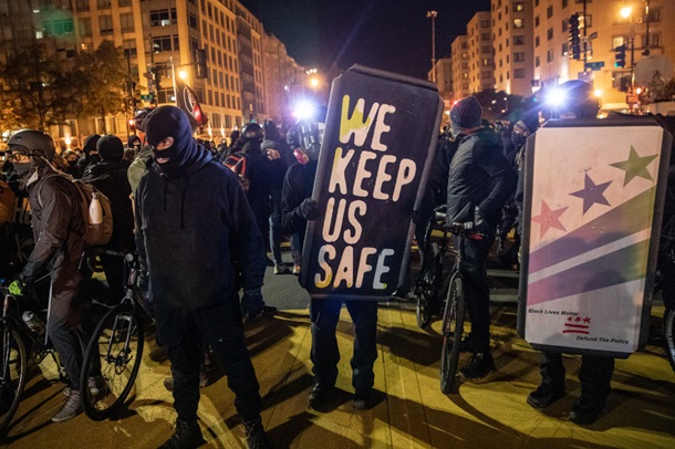В Вашингтоне мирные демонстрации переросли в столкновения с полицией, что привело к арестам. Протестующие также применяли дымовые шашки.