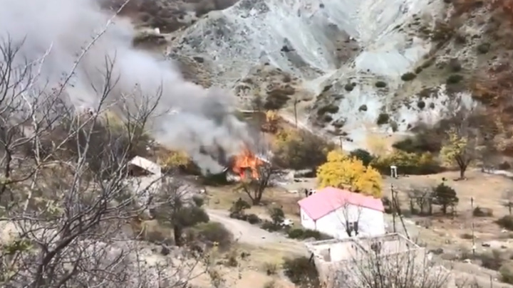 Армяне сжигают дома, покидая земли, переходящие под контроль Азербайджана