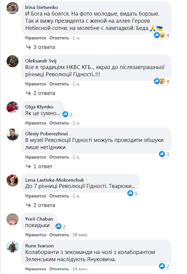 «Ох же зеленые мерзавцы. Так и выглядит реванш. Если кто-то до сих пор его не увидел за 2 года», «Тридцатые возвращаются», «Все в традициях НКВД КГБ.., как раз к послезавтрашней годовщине Революции Достоинства!!!», - пишут адепты этого события.