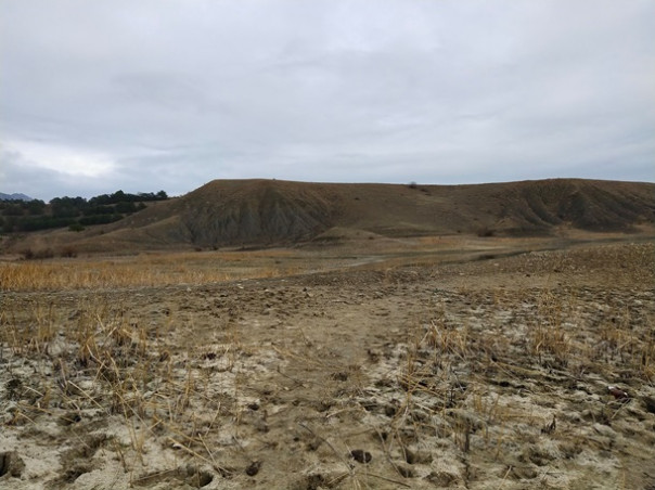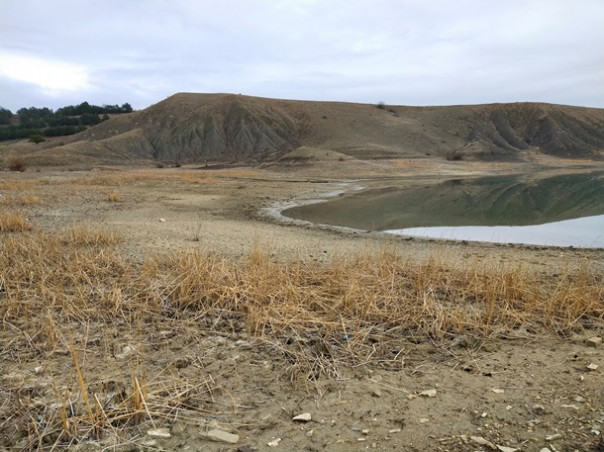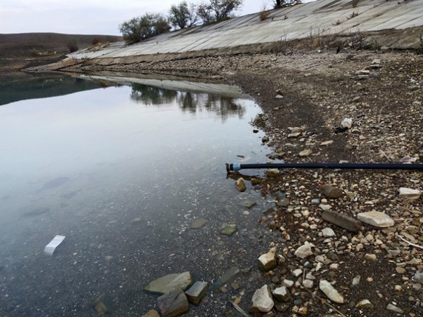 По словам автора фото, отсюда берут воду на полив, некоторые шланги уже не достают до поверхности воды. Под ногами хрустят раковины пресноводных моллюсков, поскольку дно водоема обнажилось.